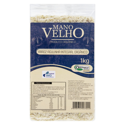 ARROZ AGULHINHA INTEGRAL ORGANICO MANO VELHO PACOTE 1KG